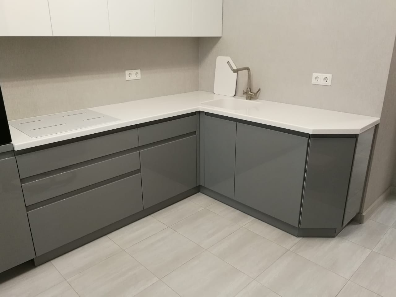 Фасады с едва заметной текстурой приглушённых оттенков создают ровную, уравновешенную поверхность. Оформление не требует лишних деталей — кухня выглядит цельно и стильно, будь то светлый, графитовый или нежный кофейный цвет. Минимум декора, максимум комфорта.