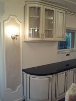 Рамочные фасады, декоративные вставки и мягкая патина добавляют объёма и глубины, создавая уютную атмосферу. Такой стиль легко сочетается с каменными столешницами, керамикой и тёплым освещением, а интерьер остаётся актуальным на долгие годы.