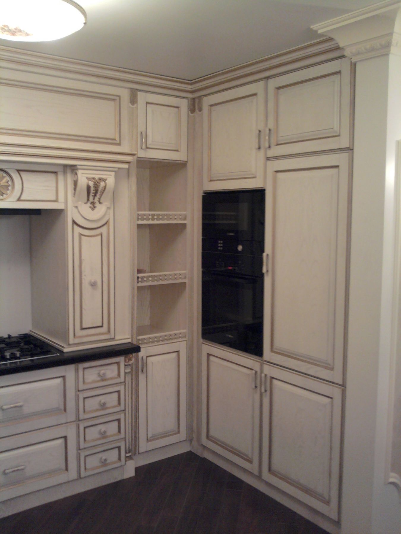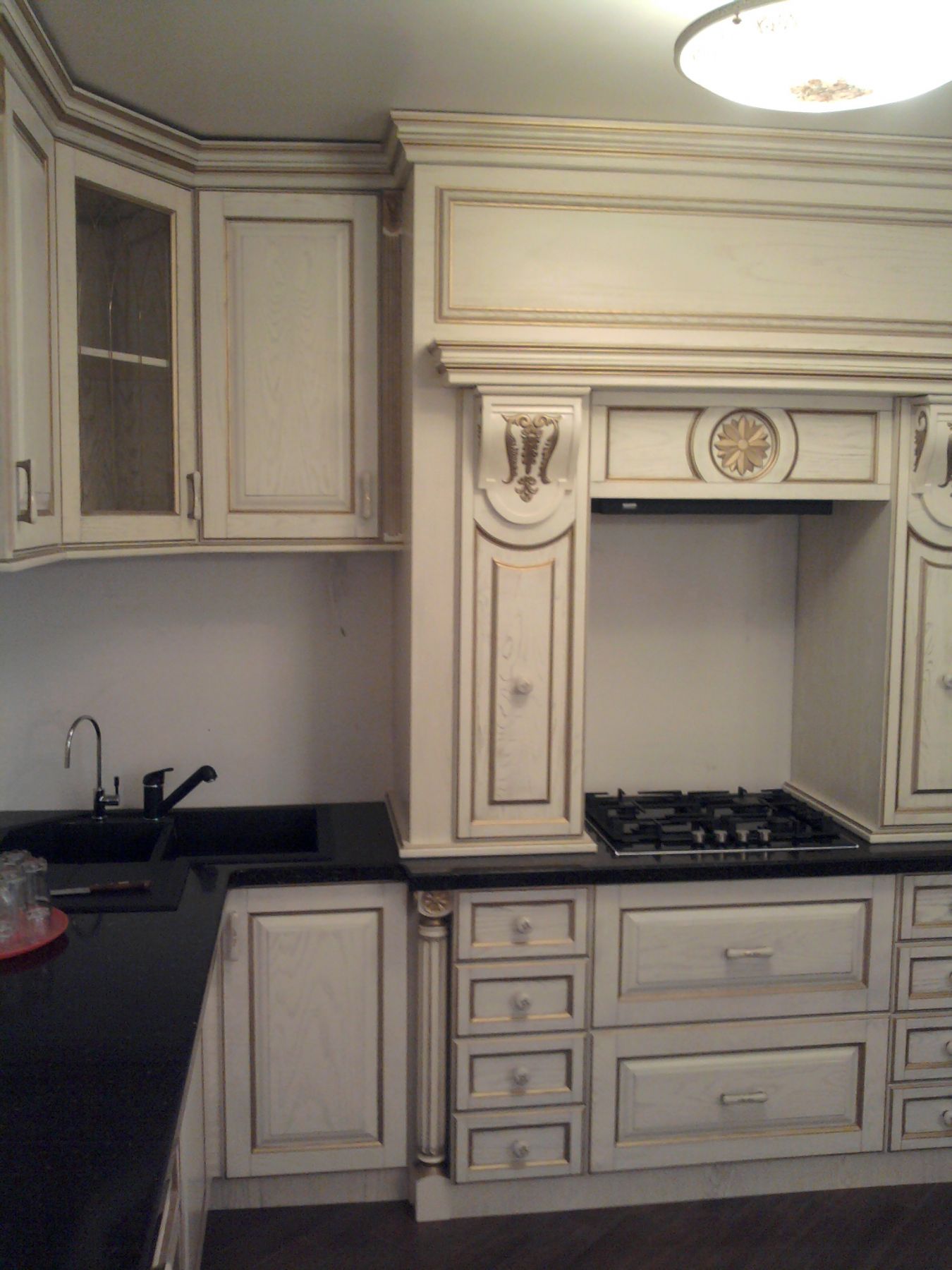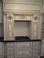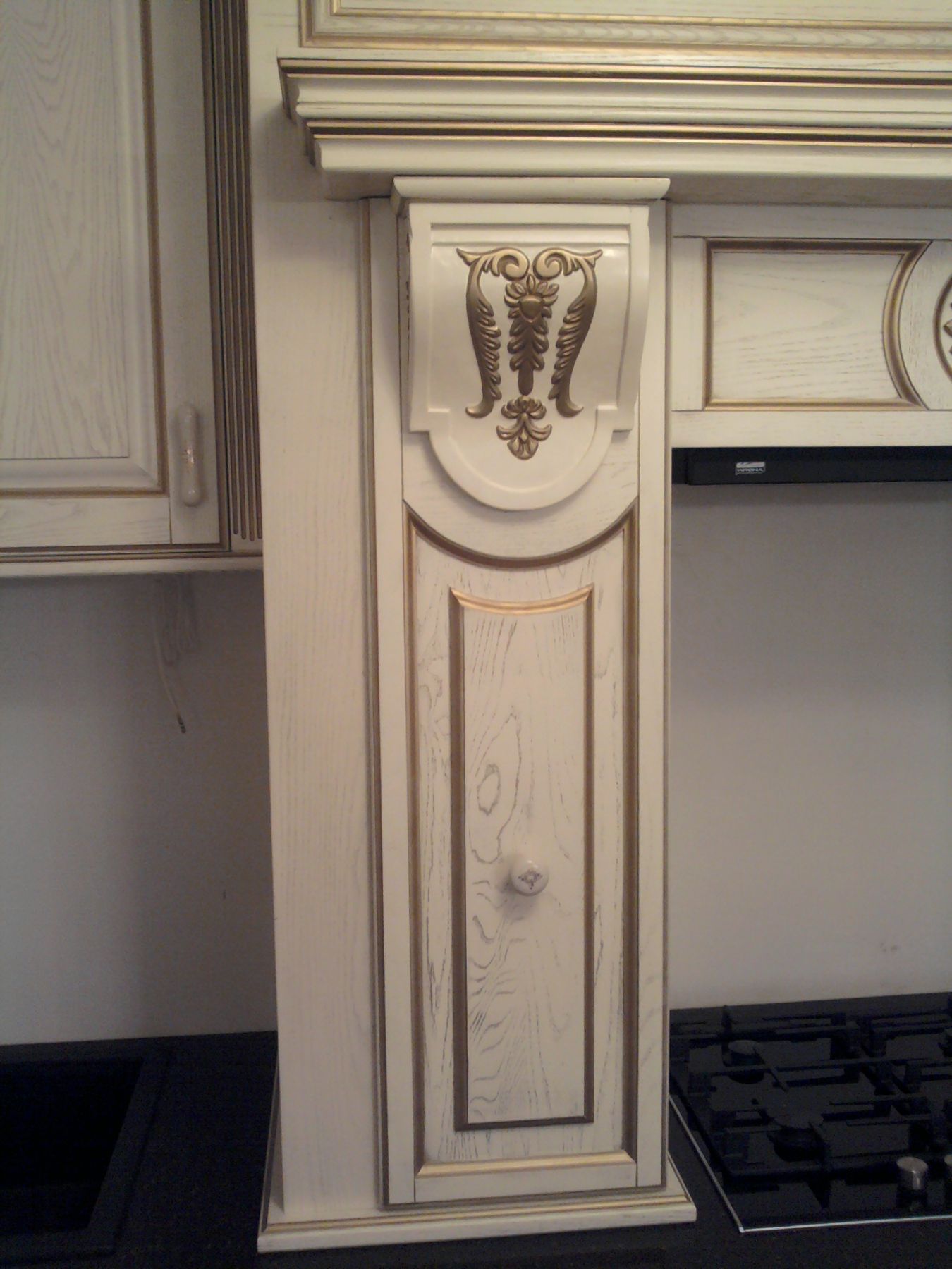Кухня «Капитан» — выразительная классика с архитектурным акцентом. Главная деталь композиции — декоративный портал (зона вытяжки), который задаёт характер всему интерьеру и создаёт ощущение основательности и статуса. Светлые фасады с патиной и аккуратным декором делают кухню тёплой и благородной, идеально подходящей для просторных помещений.