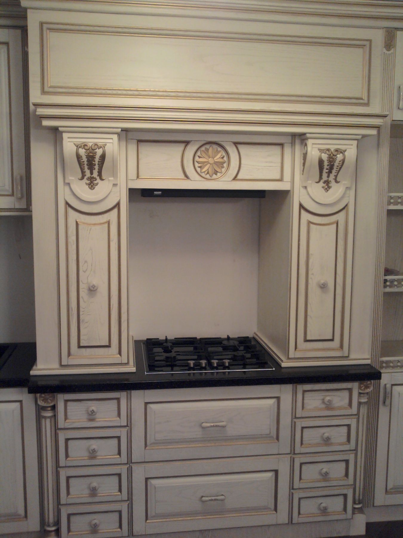 Оформление зоны готовки в виде классического портала не только красиво, но и функционально: оно визуально объединяет технику и мебель в единый ансамбль, подчёркивает симметрию и делает кухню по-настоящему «парадной».