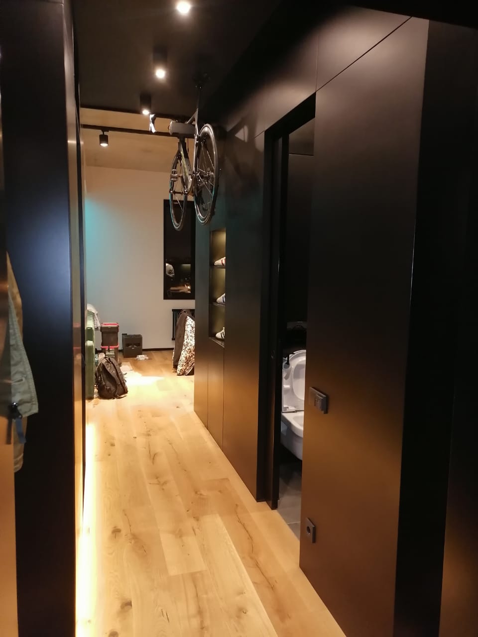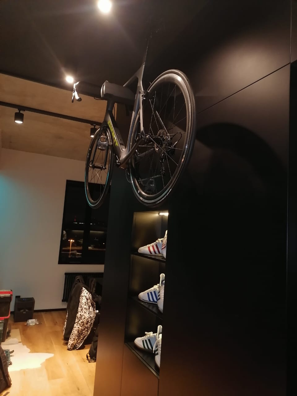 • Интегрированная зона для подвесного хранения велосипеда экономит место и делает его частью стильного интерьера