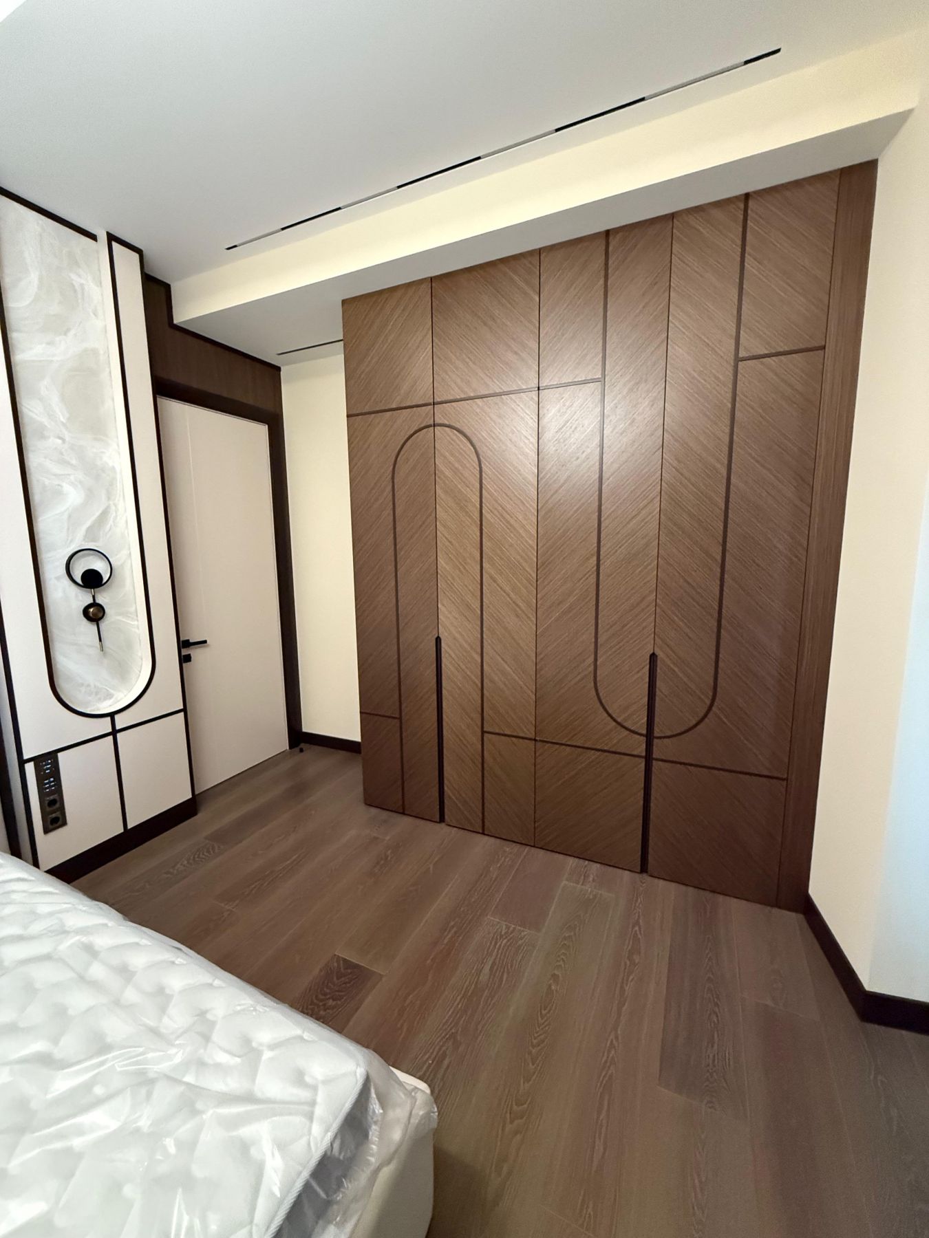 Минималистичный облик достигается за счет отсутствия видимых ручек: дверцы открываются с помощью современной системы push-to-open или сквозных скрытых профилей. Благодаря этому шкаф гармонично вписывается в интерьер, визуально расширяет пространство и делает его более чистым и структурированным.