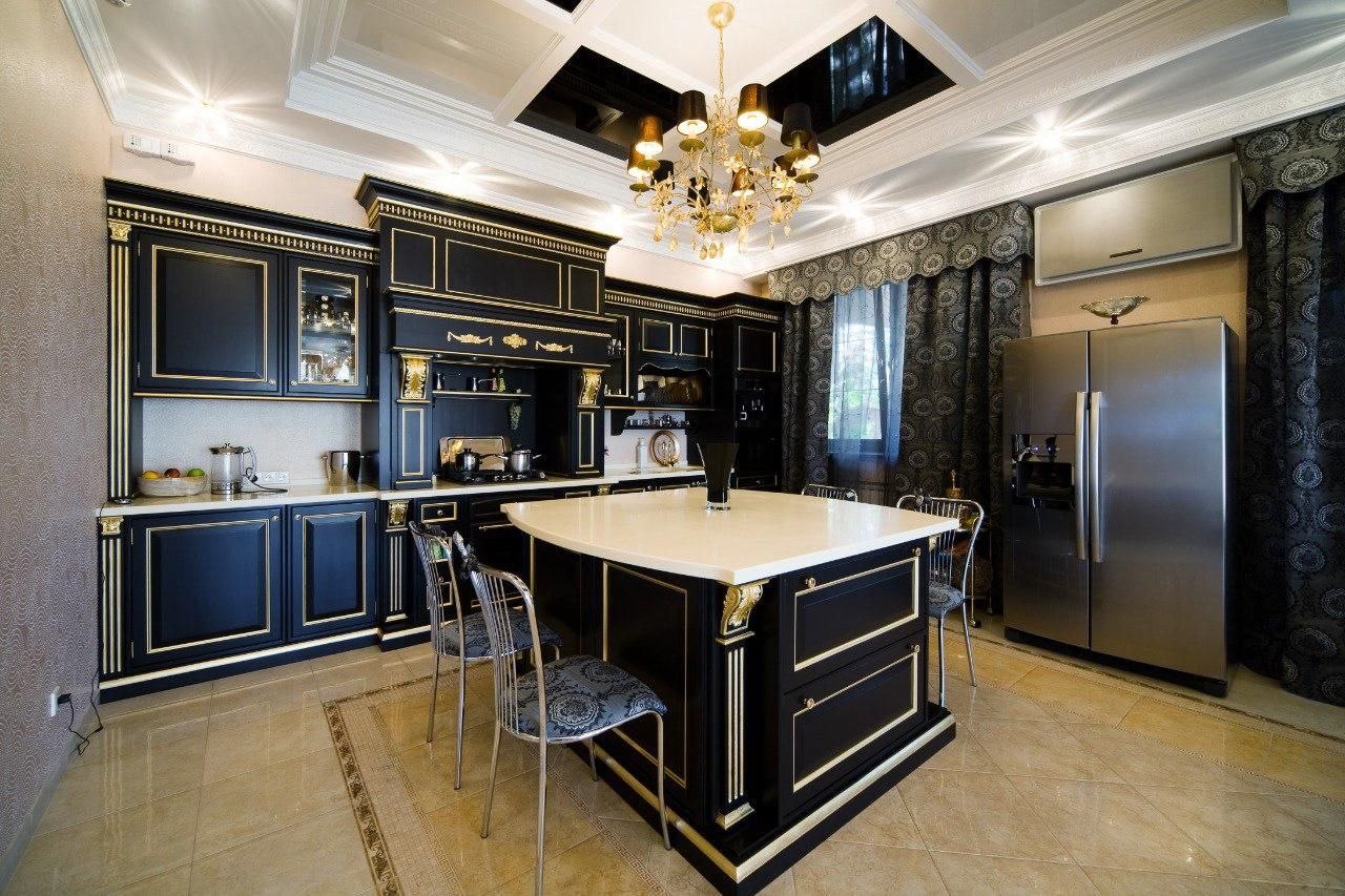 Кухня «Версаль» — роскошная классика с характером, созданная для тех, кто ценит статусный интерьер и внимание к деталям. Глубокие тёмные фасады в сочетании с золотистой отделкой выглядят по-настоящему эффектно, а центральный остров делает пространство удобным для готовки, сервировки и общения.